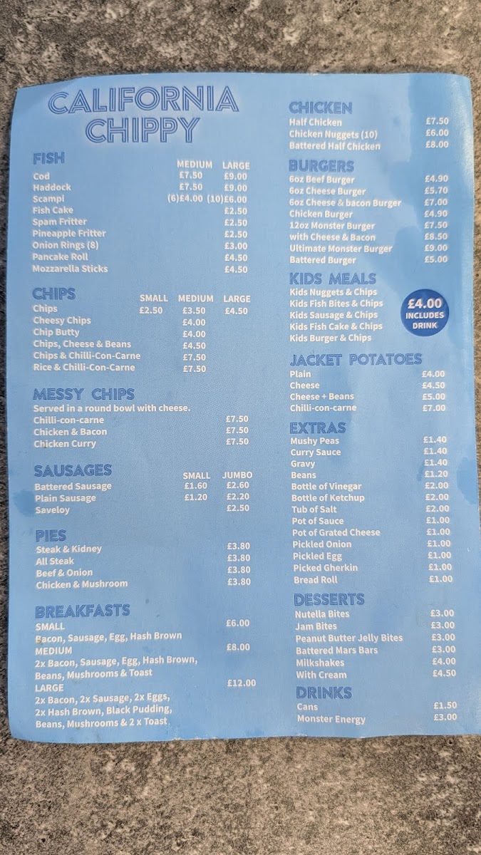 California Cafe and Chip Shop is not just a place to grab a quick bite; it’s a haven for food lovers of all ages, promising an enjoyable dining experience with every visit. Whether you're after comfort food, a quick meal on the go, or a cozy spot to relax with a cup of tea, this charming cafe has something to offer you. Don't miss your chance to experience the delightful offerings and friendly service—it might just become your new favorite spot in Great Yarmouth!