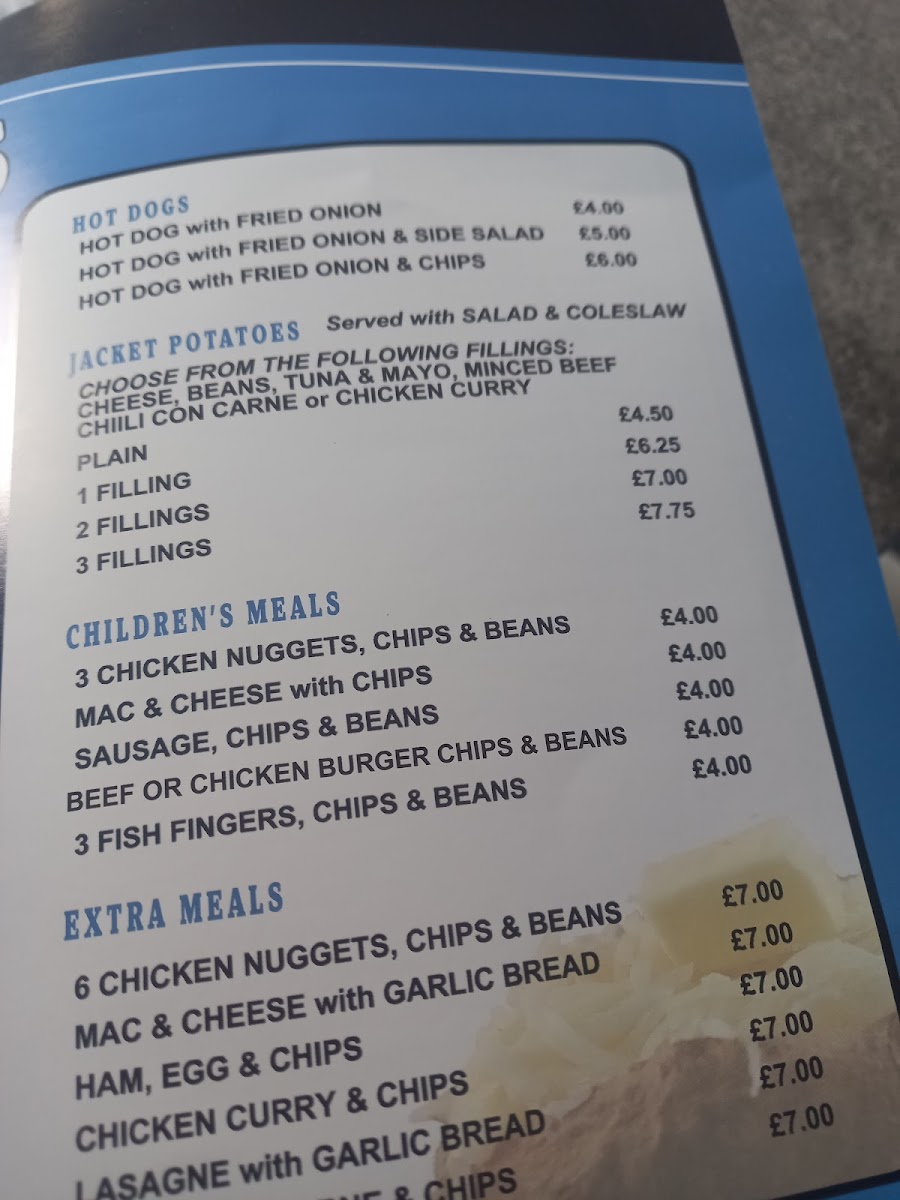 The menu is a treasure trove of comfort food, featuring an array of tempting options perfect for both kids and adults. For the little ones, the Kids Meals offer delightful choices like Kids Nuggets & Chips and Kids Fish Bites & Chips, providing them with a satisfying dining experience. The Pies section boasts hearty selections such as the Steak & Kidney and Chicken & Mushroom, all priced at a wallet-friendly £3.80. These are perfect for those who crave a taste of traditional British comfort food.